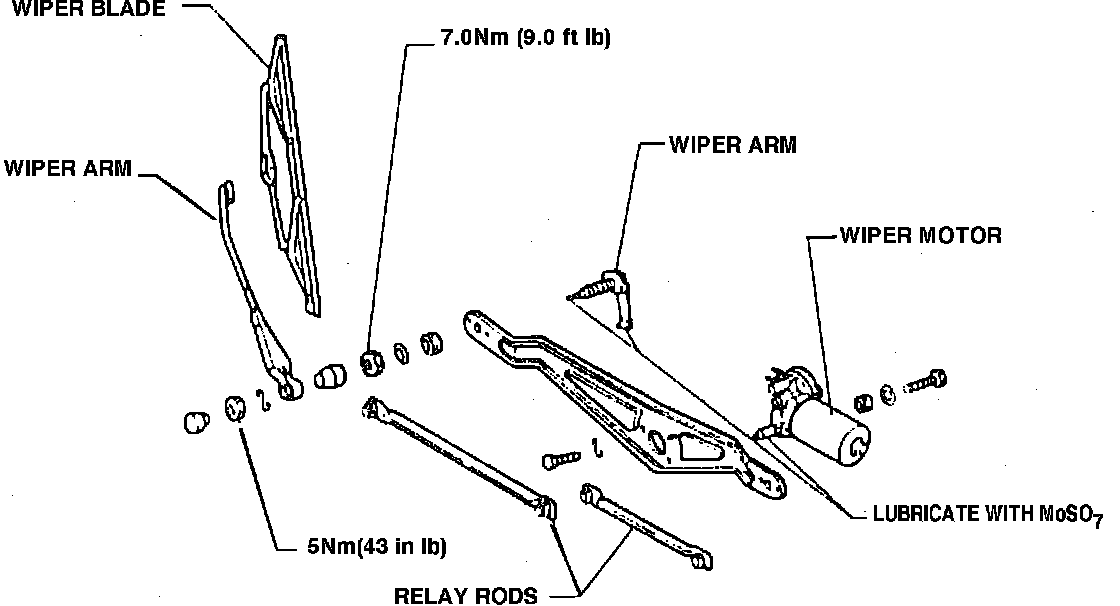 2. Disconnect wiper assembly connecting rods from wiper motor crank arm.