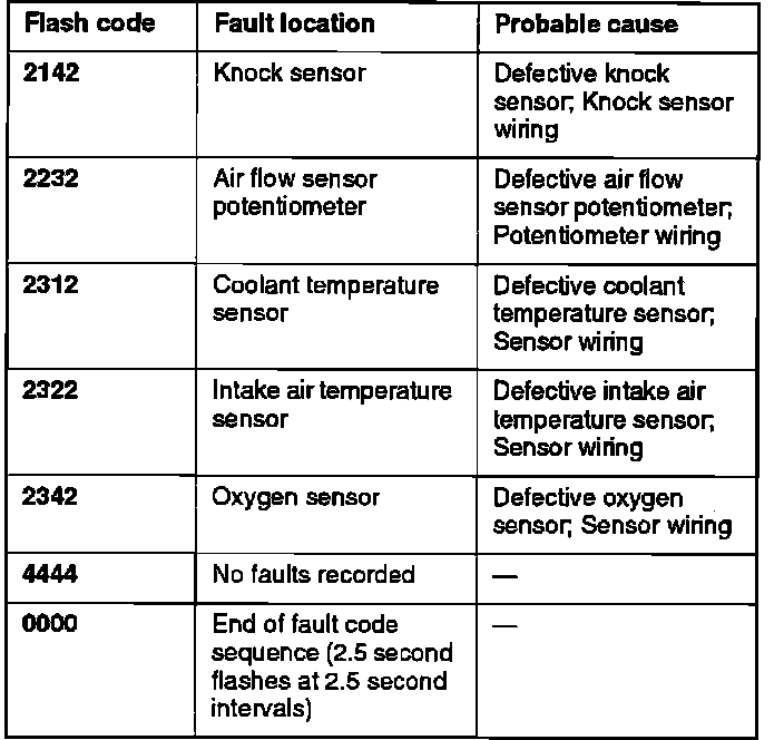 Fault Code Chart (California Only):