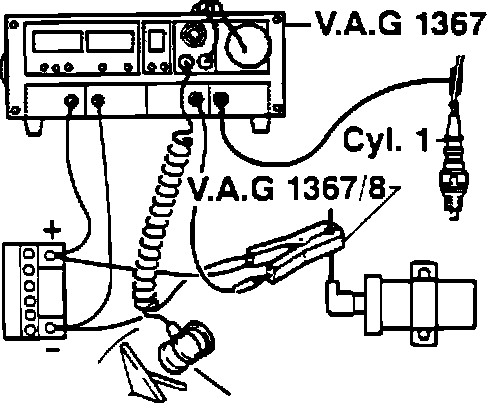 3. Connect VAG 1367 engine tester using VAG 1367/8 inductive pickup, or suitable timing light and tach.