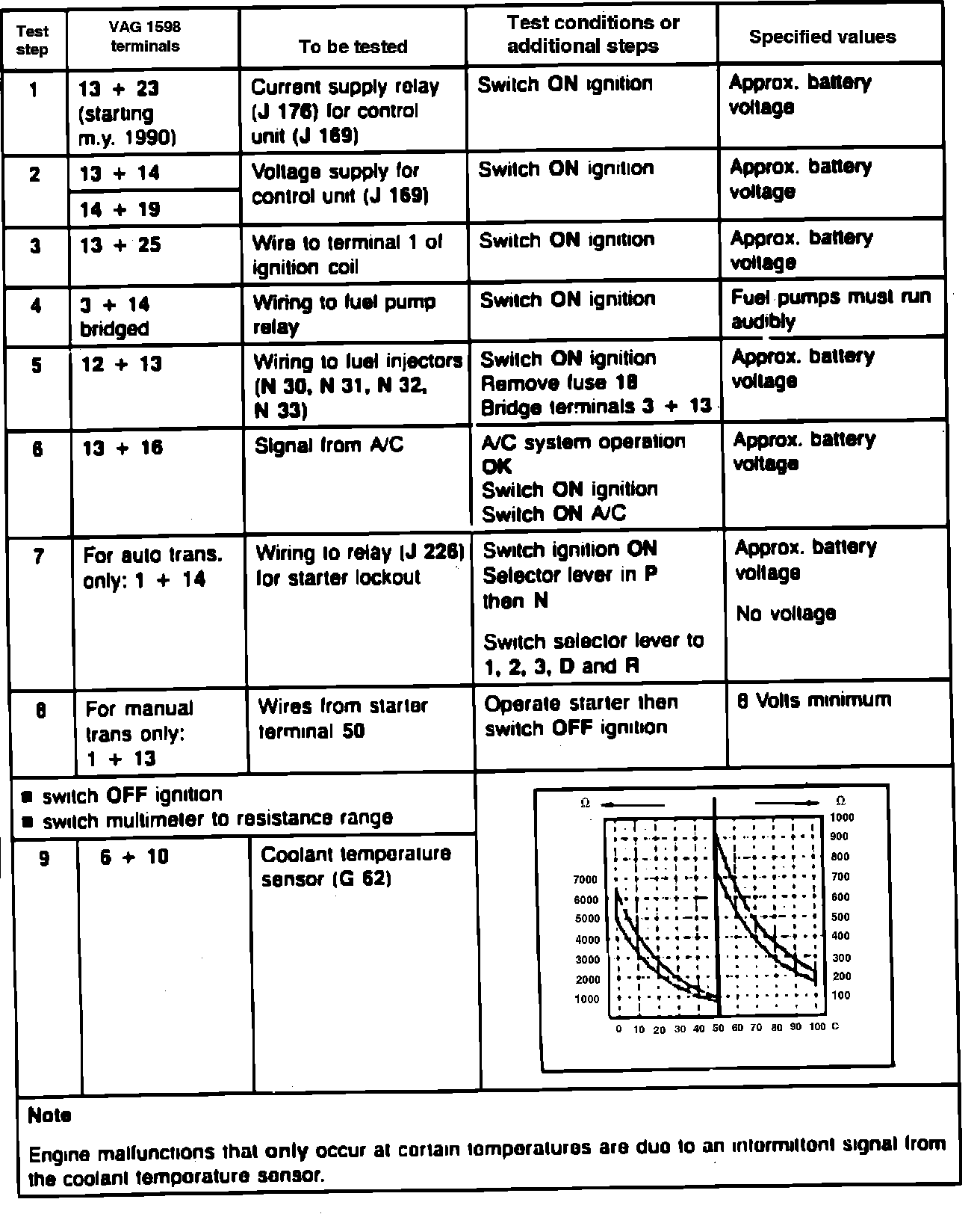 1. Ensure battery voltage, fuse 18, Digifant system ground wires, fuel pump and fuel pump relay are all in satisfactory condition.