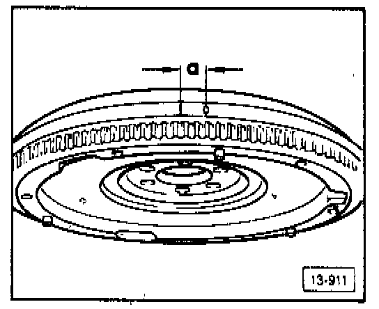NOTE: If you replace the flywheel/drive plate you will have to inscribe the ignition timing mark. Replacement flywheel/drive plates have the 0 degree TDC mark only. Make ignition timing mark at a point in an arc left from center of TDC marking.