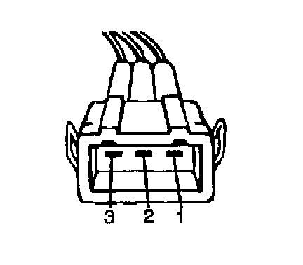 With the ignition off, disconnect the power stage harness connector. Connect a voltmeter to terminals 1 and 3 as shown. When the ignition is turned on, there should be approximately battery voltage. Turn off the ignition. If there is no voltage, either there is a break in the wiring from terminal 1 to the fuse relay panel, or from terminal 3 to ground. Use the wiring diagrams to check for continuity and repair any wiring breaks as necessary. Reconnect the connector.