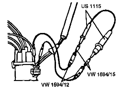 The Hall sender and coil power stage should be tested if there is no spark at the spark plugs when tested. These tests also check the Digifant control unit response to the Hall sender signal. For these tests, the spark plug wires and ignition coil should be in good condition. The Hall sender connector is on the side of the distributor. The coil power stage is located on top of the coil.