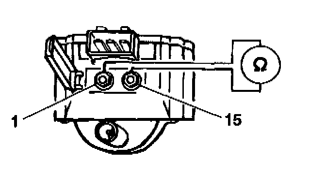 Reconnect the power stage connector and the fuel injector connector. Connect a multimeter between terminals 1 and 15 of the coil. When the ignition is turned on there must be 2 volts minimum, which then drops to 0 volts after 1 to 2 seconds. If not, then the coil power stage is faulty.