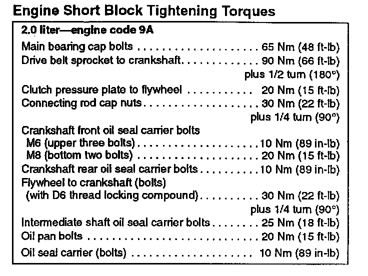Short Block Torque Specifications: