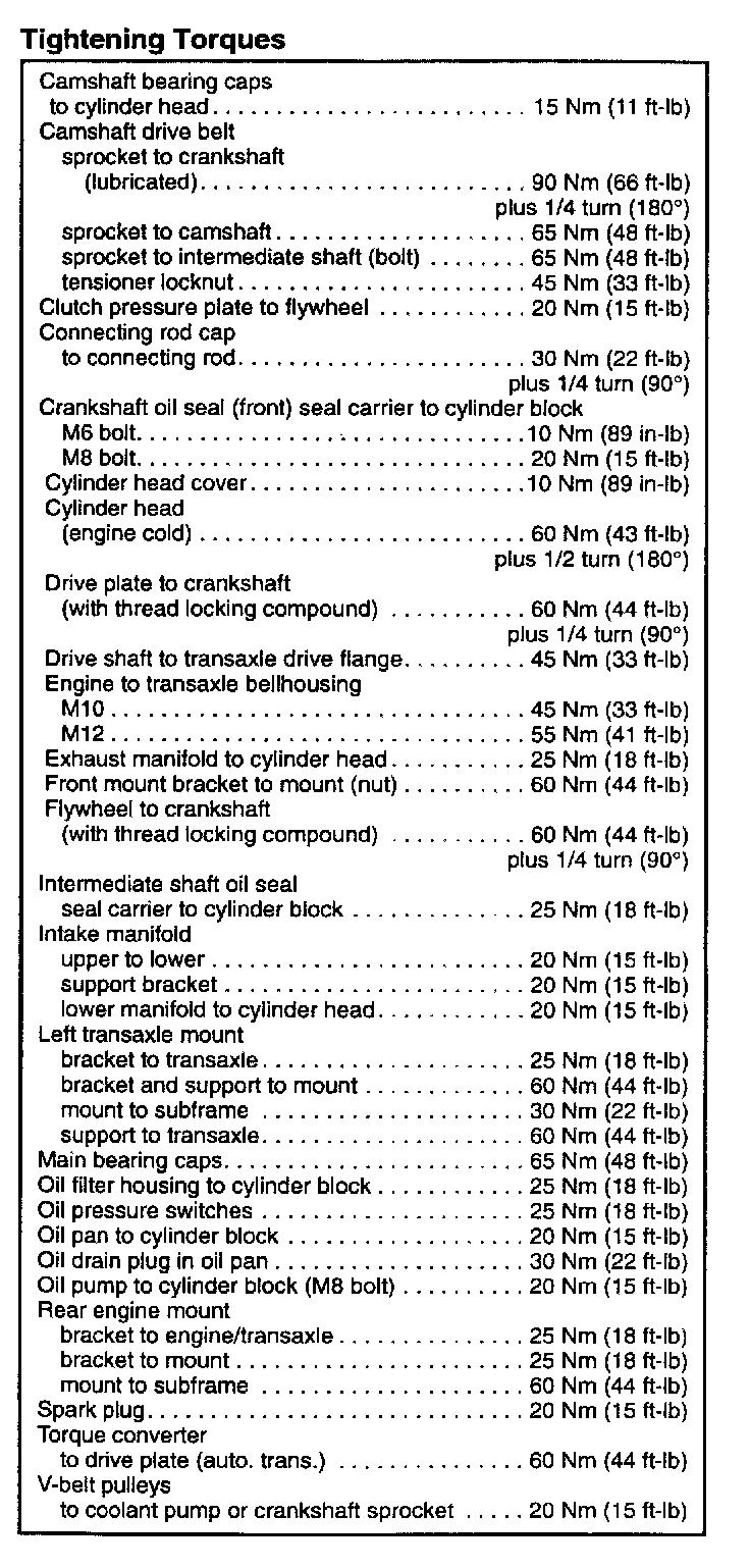 Engine Torque Specifications: