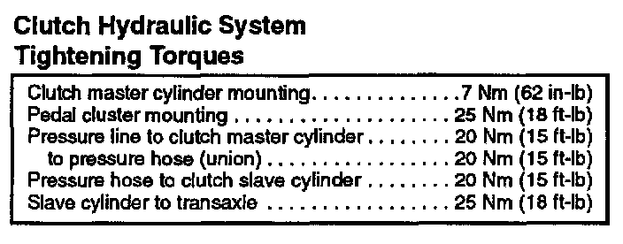 Clutch System Torque Specifications: