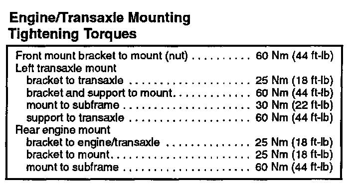 Engine/Transaxle Mounting Torque Specifications: