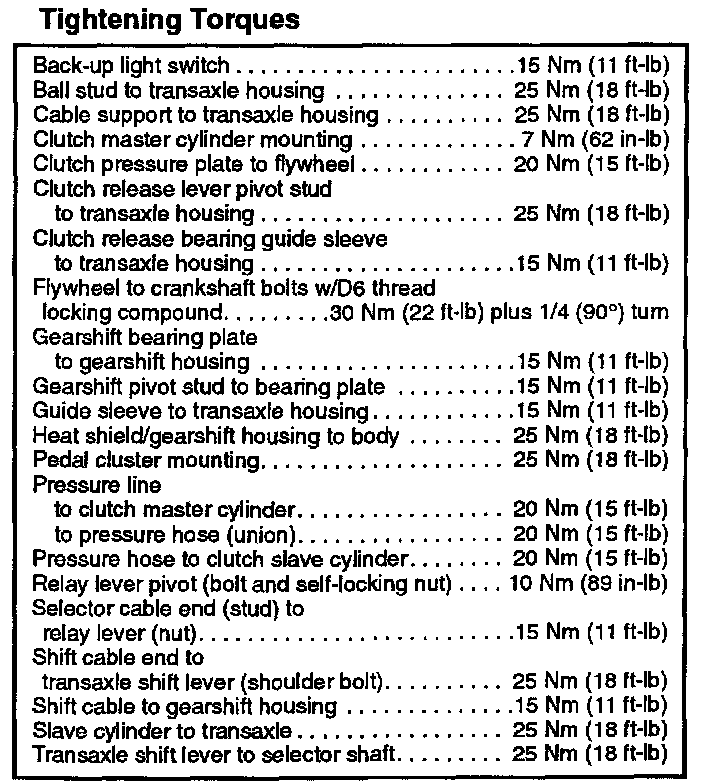 Manual Transmission Torque Specifications