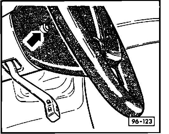 ^ remove Torx-head retaining screws on either side of steering wheel (arrow)
