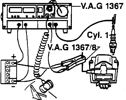 3. Connect VAG 1367 engine tester using VAG 1367/8 inductive pickup, or a suitable strobe timing light and tachometer may be used.