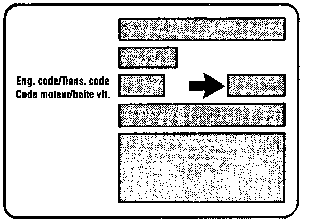 The vehicle ID label is located on the luggage compartment floor. The arrow illustrates the location on the label where the transaxle code can be found.