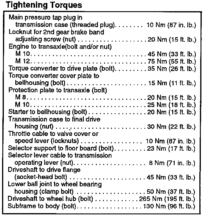 Transmission Torque Specifications