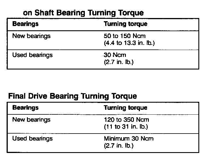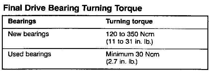 Pinion Shaft And Final Drive Bearing Torque Specifications: