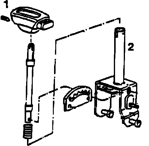 ^ Remove handle and file a flat region in selector lever (2) at location established in previous step.
