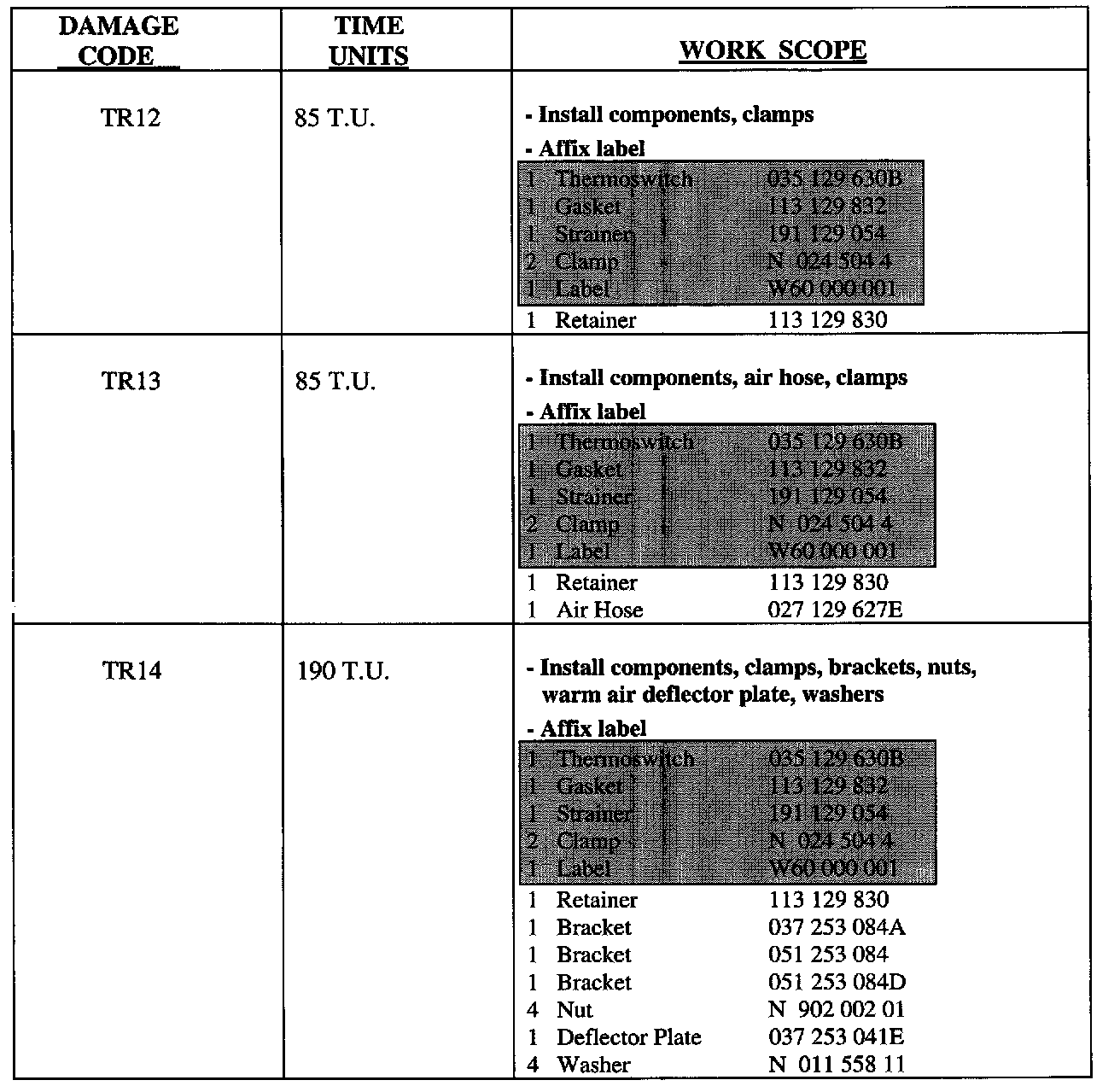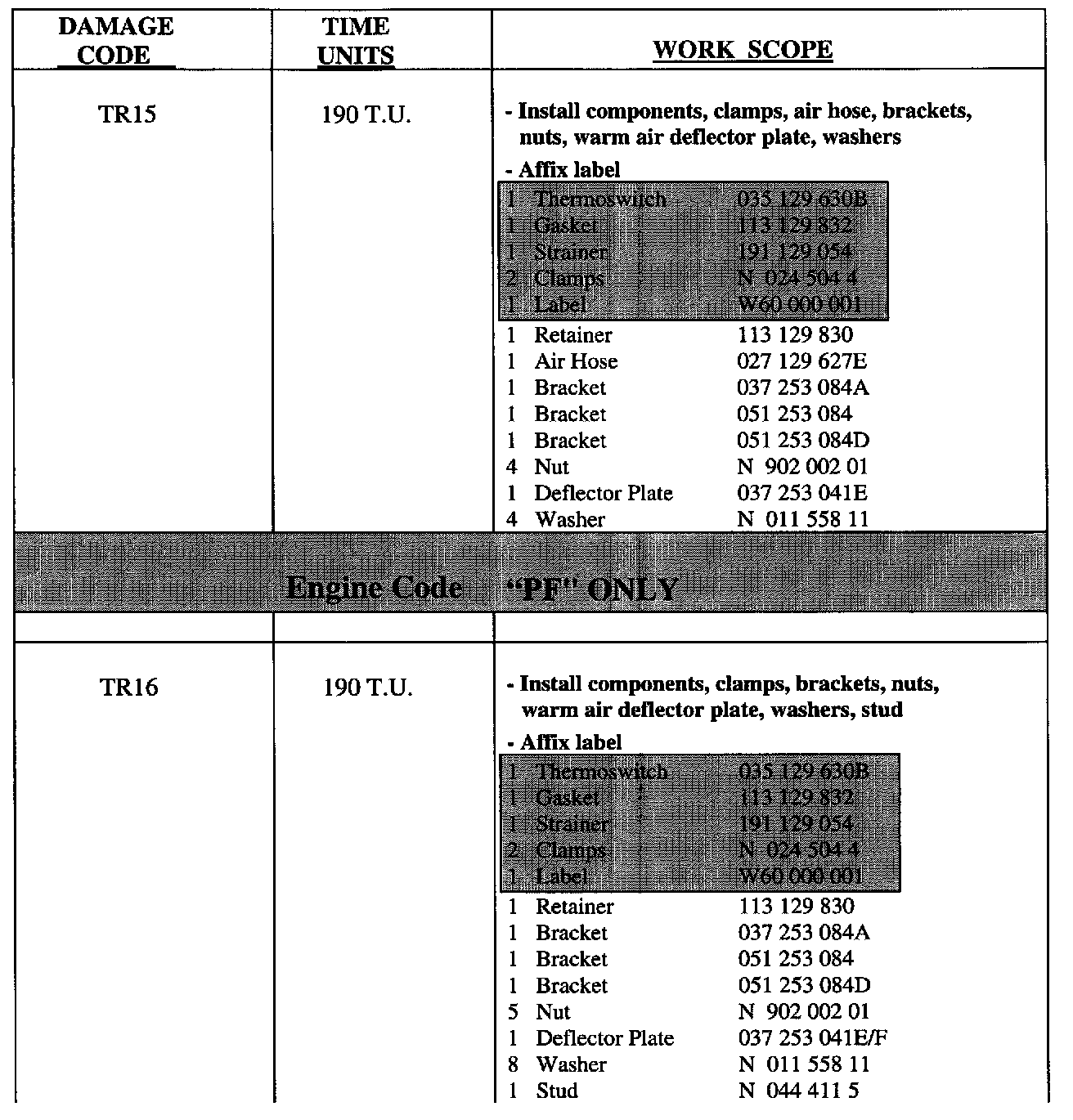 NOTE: Volkswagen Canada, Inc. will not reimburse under this campaign any duplicate repair work or a repair outside the VIN range.