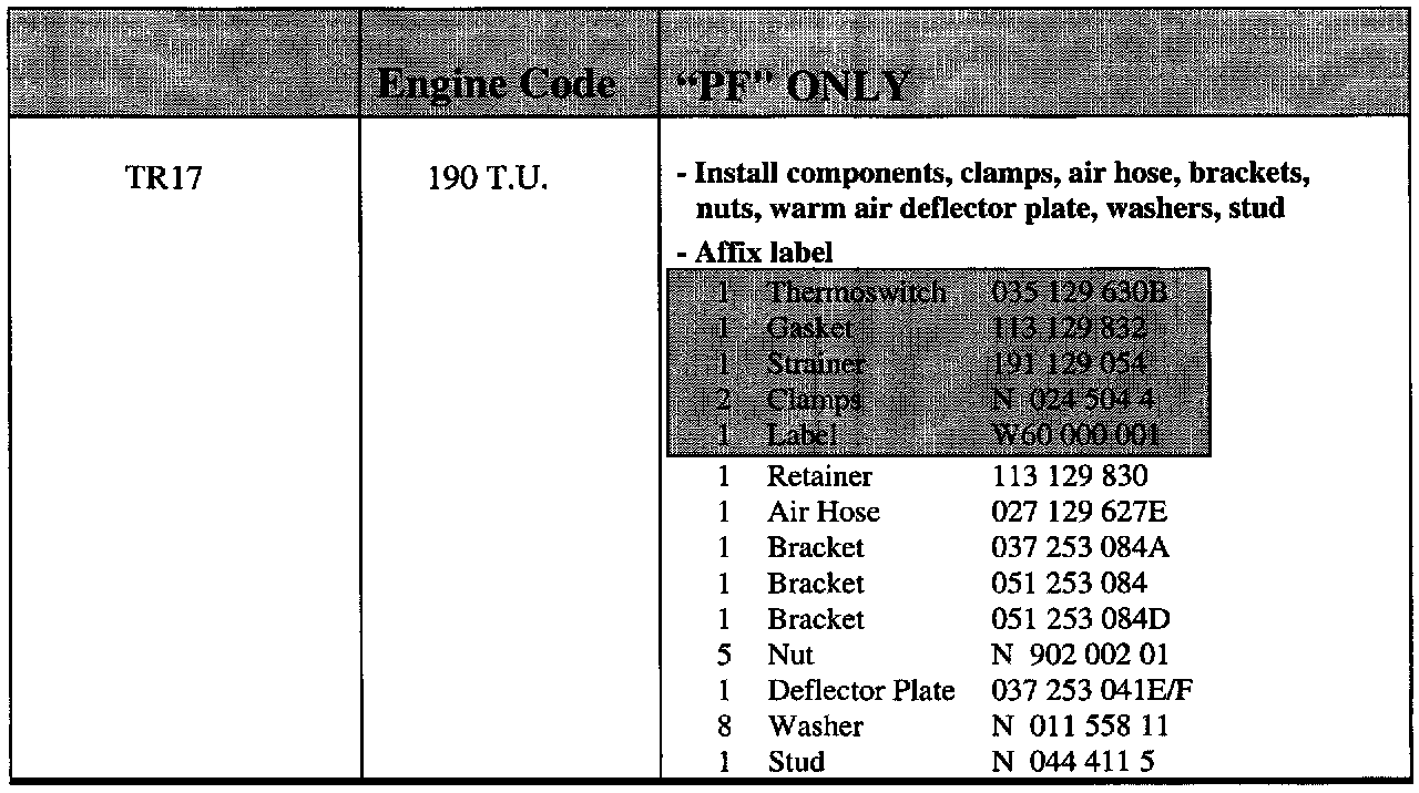 1987-92 Volkswagen Golf/Jetta Vehicles Equipped with Digifant Engines Update Intake Air Pre-heating System (CANADA ONLY)