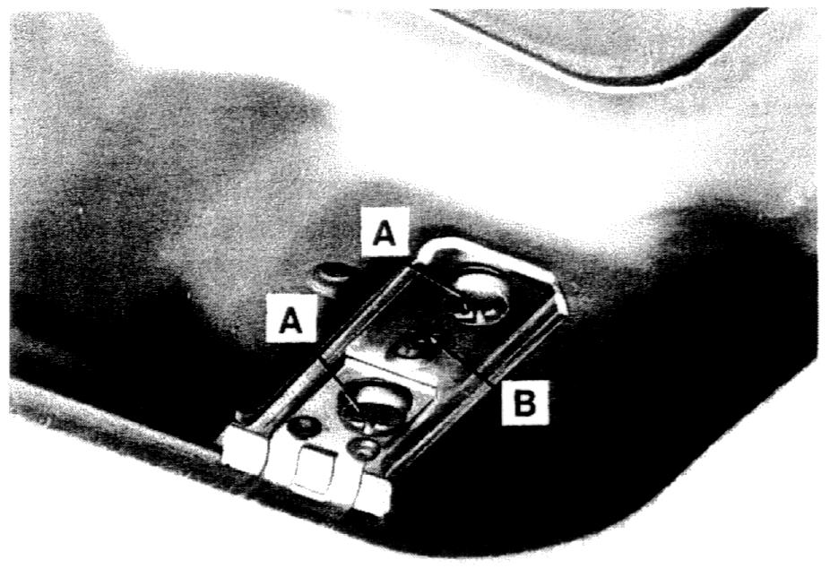 2. Close the sunroof. Loosen the mounting screws (A) that hold the sunroof to the front guides, then turn the adjustment screw (B) until the front of the sunroof is aligned as shown in figure below. Tighten the mounting screws.