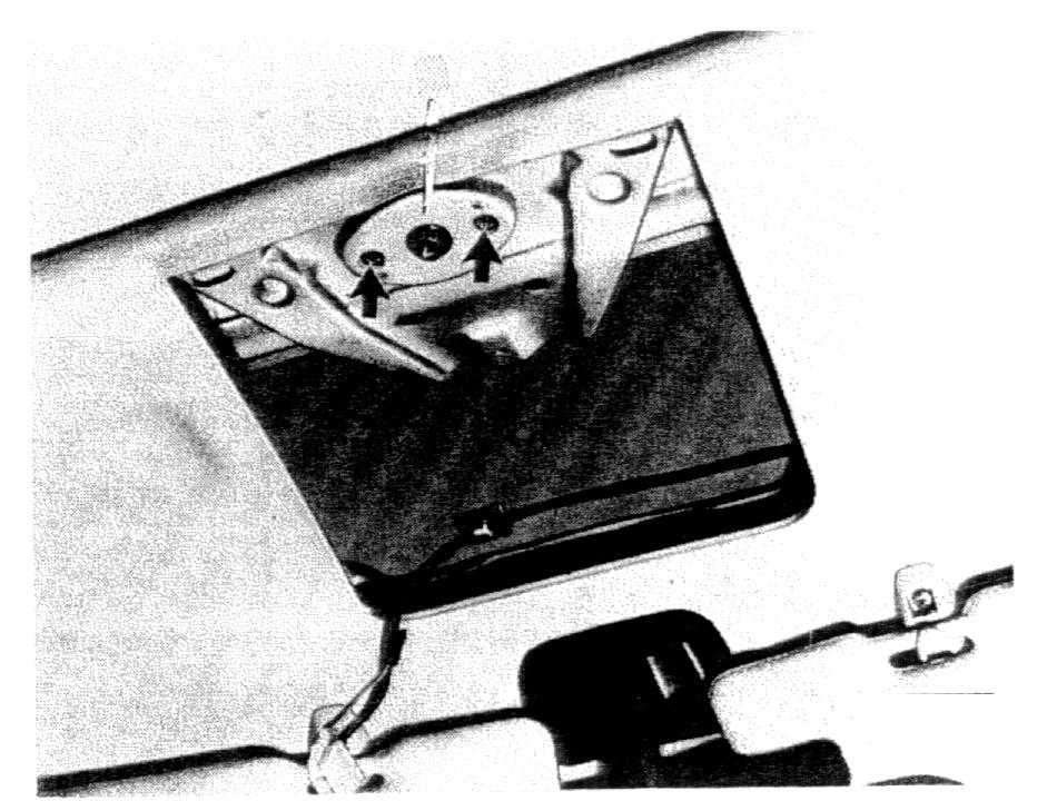 4. Turn the crank 1/2 turn to open the sunroof, then remove the crank handle. Remove the interior dome light, and pry out the crank handle trim panel at the rear. Remove the mounting screws (arrows) from the cable drive as shown, and remove the cable drive with the drive gear from above.