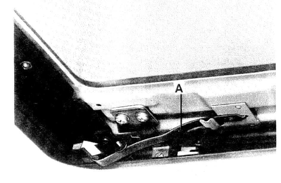 3. At the rear guides, unhook the left and right leaf springs (A) and swing them inward as indicated (arrow).