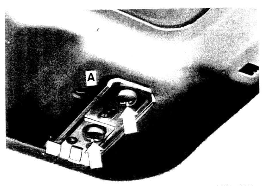 4. Remove the screws (arrows) from the rear guides, then slide the support plate (A) inwards and remove it. Remove the sunroof through the top of the car.