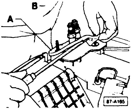 - Remove seal (A) at A/C inlet/outlet pipes (B).