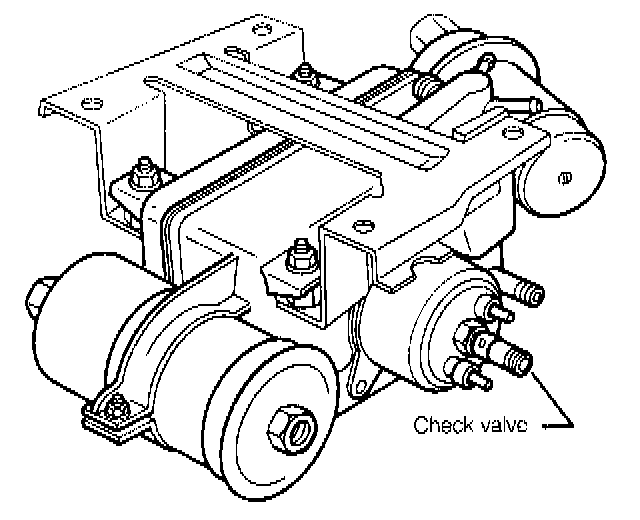 The location of the pump check valve is shown in Fig. 4-15. To replace it, clean and disconnect the fuel line as described above in Replacing Fuel Pump. With the line disconnected, the check valve can be removed from the pump. Use new sealing washers for both the check valve and the fuel line union. Torque both parts to 20 Nm (15 ft. lb.).