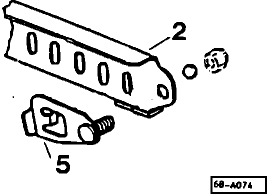 ^ install replacement stop plate (5), and fasteners on center rail of seat frame