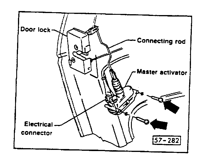 ^ remove access plug below door latch and disconnect electrical connector