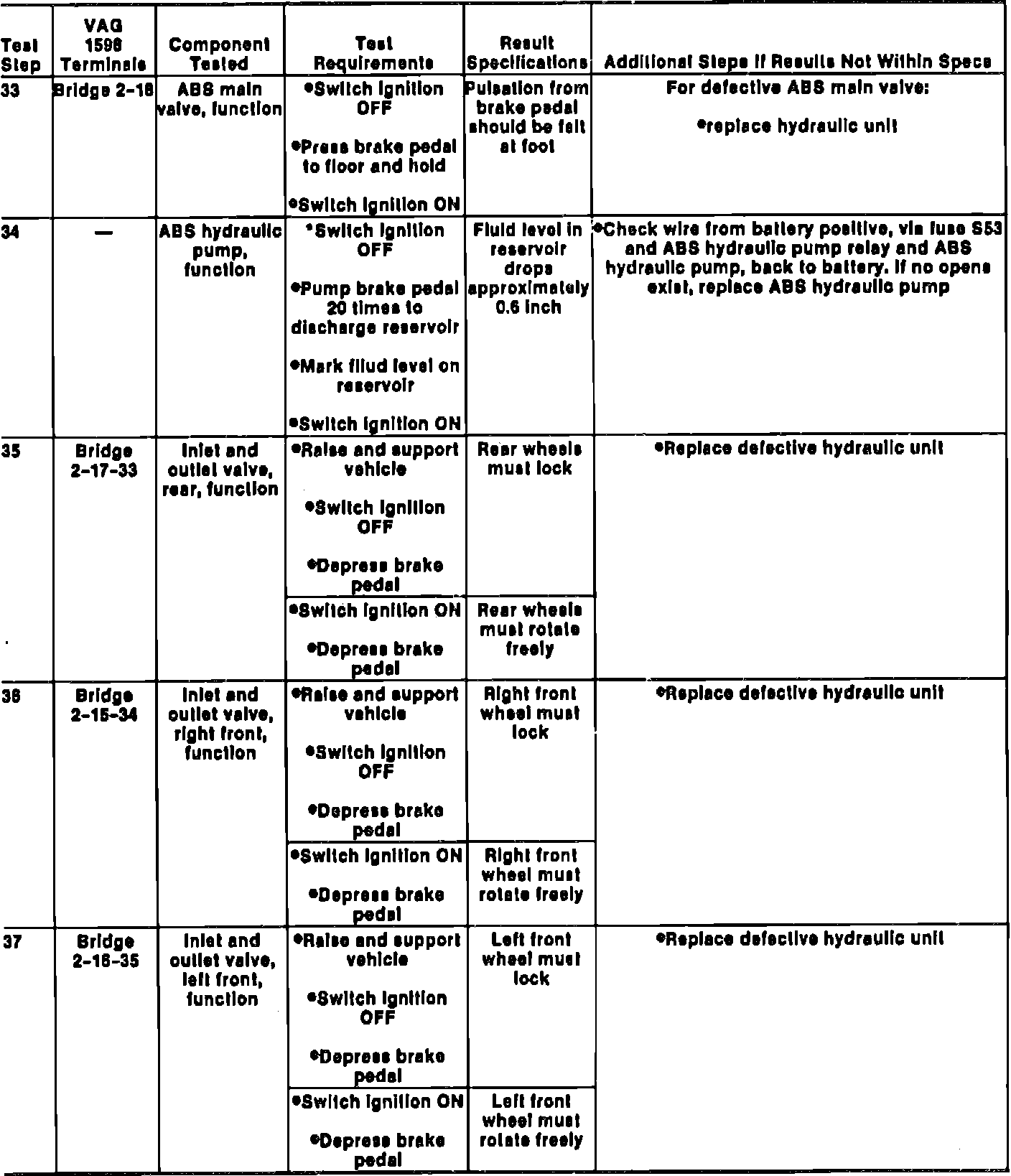 Fig. 10 ABS Electrical Testing Troubleshooting Chart (Part 5 Of 5). Corrado Except Models w/Electronic Differential Lock (EDL), Jetta GLI 16V Models From 1/89 Production & Passat: