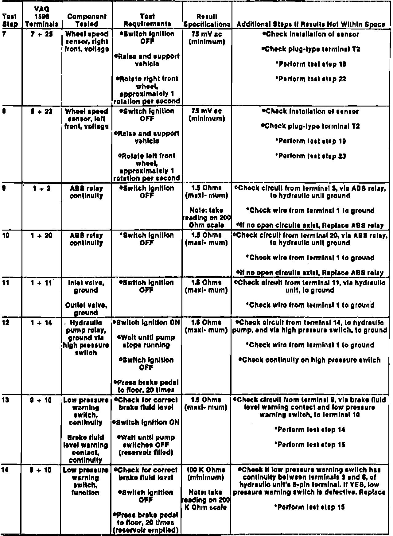 Fig. 10 ABS Electrical Testing Troubleshooting Chart (Part 2 Of 5). Corrado Except Models w/Electronic Differential Lock (EDL), Jetta GLI 16V Models From 1/89 Production & Passat: