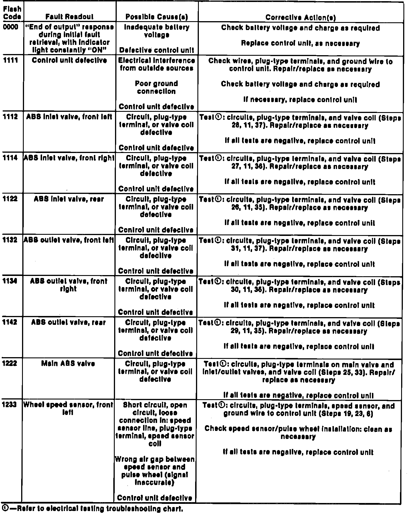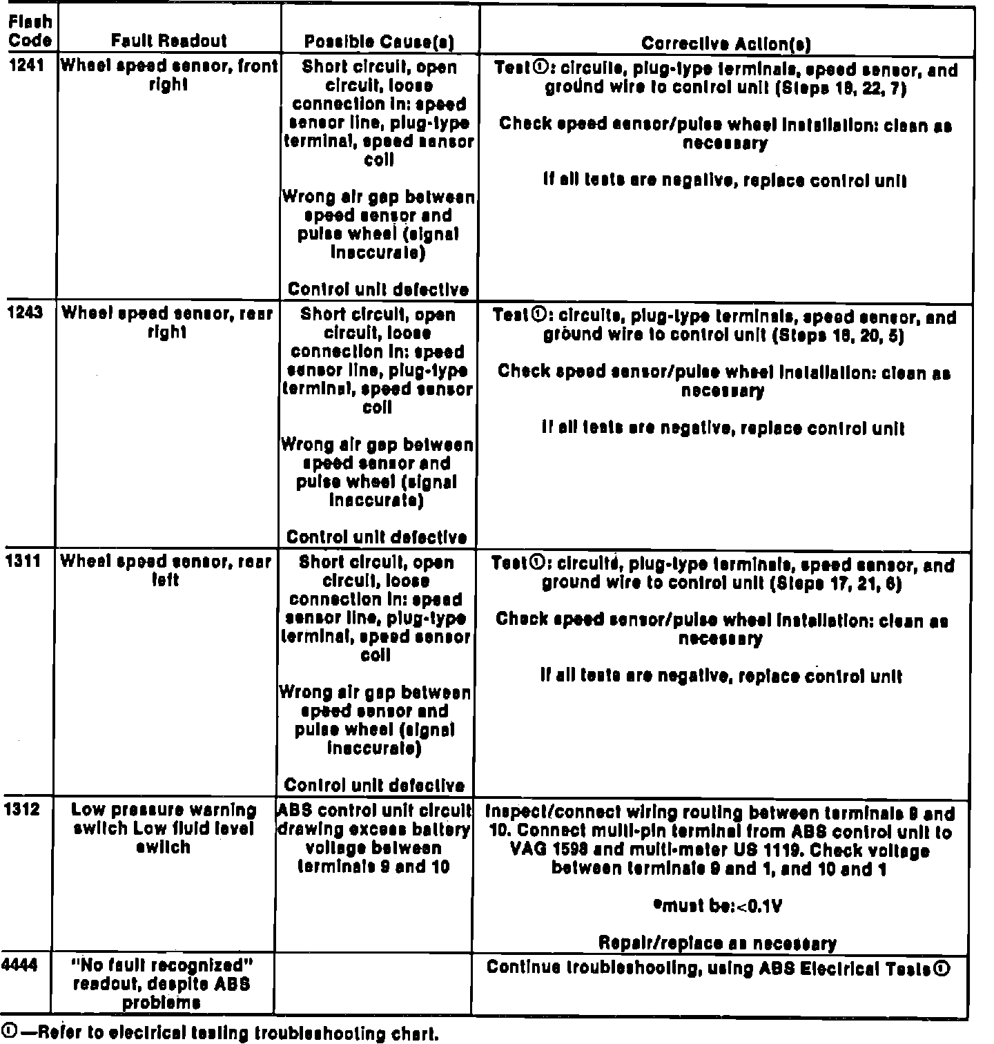 Fig. 4 ABS ``Flash Code'' Troubleshooting Chart, Using VAG 1551 (Part 2 Of 2). Corrado Except Models w/Electronic Differential Lock (EDL), Jetta GLI 16V Models From 1/89 Production & Passat: