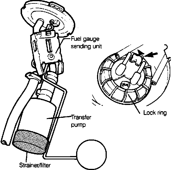The Fuel Transfer Pump is mounted in the fuel tank as part of an integral assembly with the fuel gauge sender.