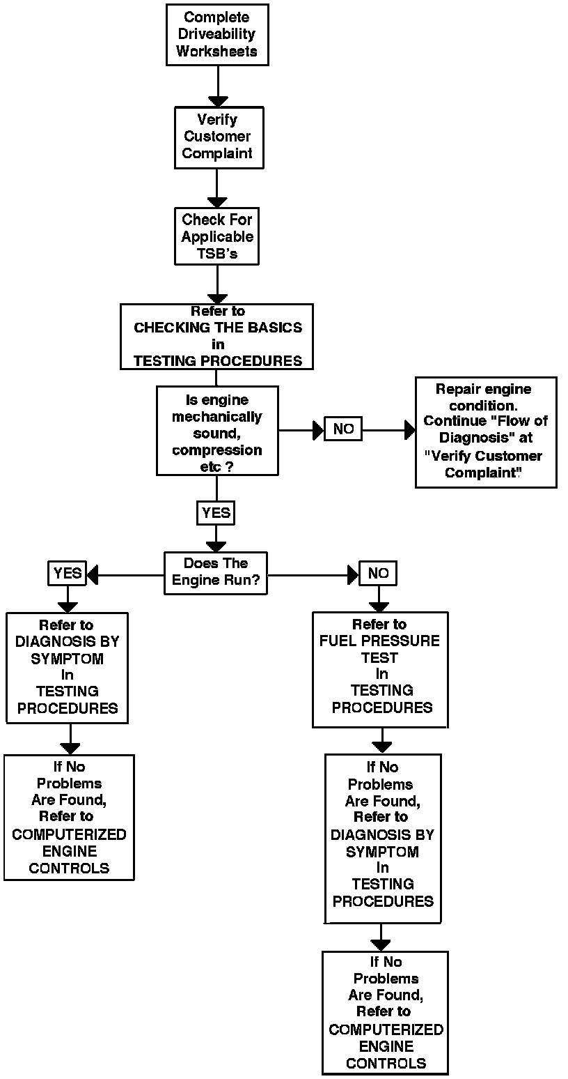 5. Follow the chart from top to bottom. If no faults are found, refer to COMPUTERIZED ENGINE CONTROLS.