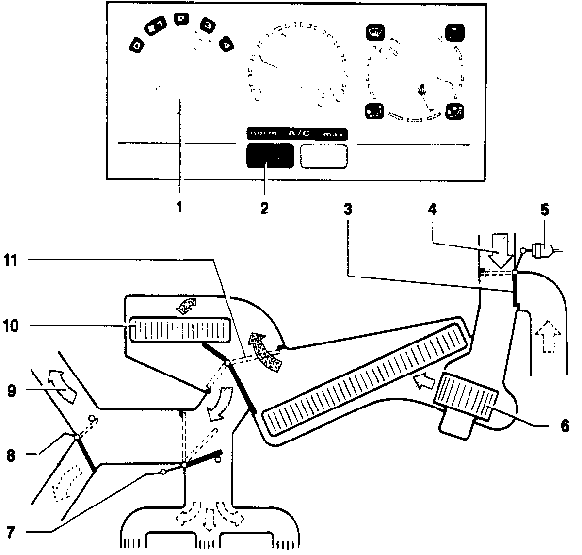 - fresh air/recirculation vacuum servo 5 must be extended (no vacuum applied)