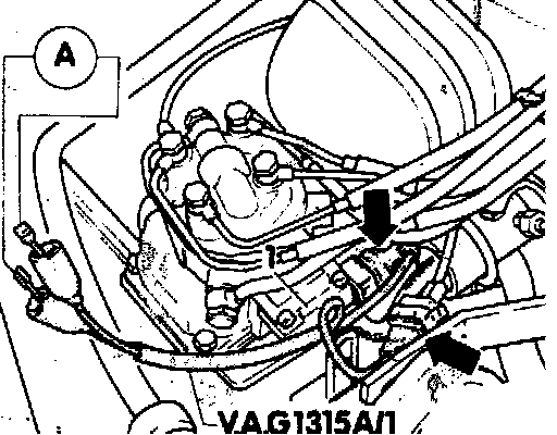 - connect test adaptor VAG 1315A/1 between regulator and harness connector (arrows)