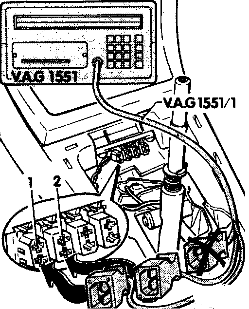 - connect VAG 1551 Diagnostic Tester using VAG 1551/1 adaptor cable as follows