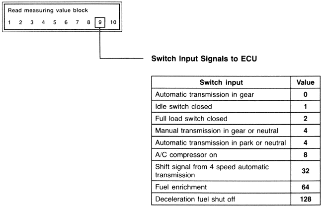 The ECU scans the system for certain conditions that must be met or for certain components that must be present or operative. It then assigns the numerical values (listed in the table below) to these conditions or components and adds them together to create the display value.