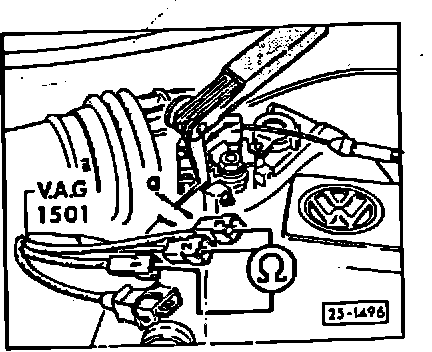 - Connect multimeter to adaptor leads 1 and 2, using jumpers from adaptor kit VW 1594.