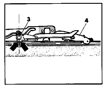 - Move rear guides with cables to rear and position pivots 3 within marked area (arrows).