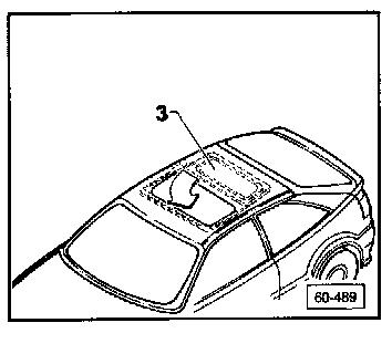 - Slightly raise headliner trim frame 3, rotate 90° (1/4 turn), and remove from roof cutout from front.