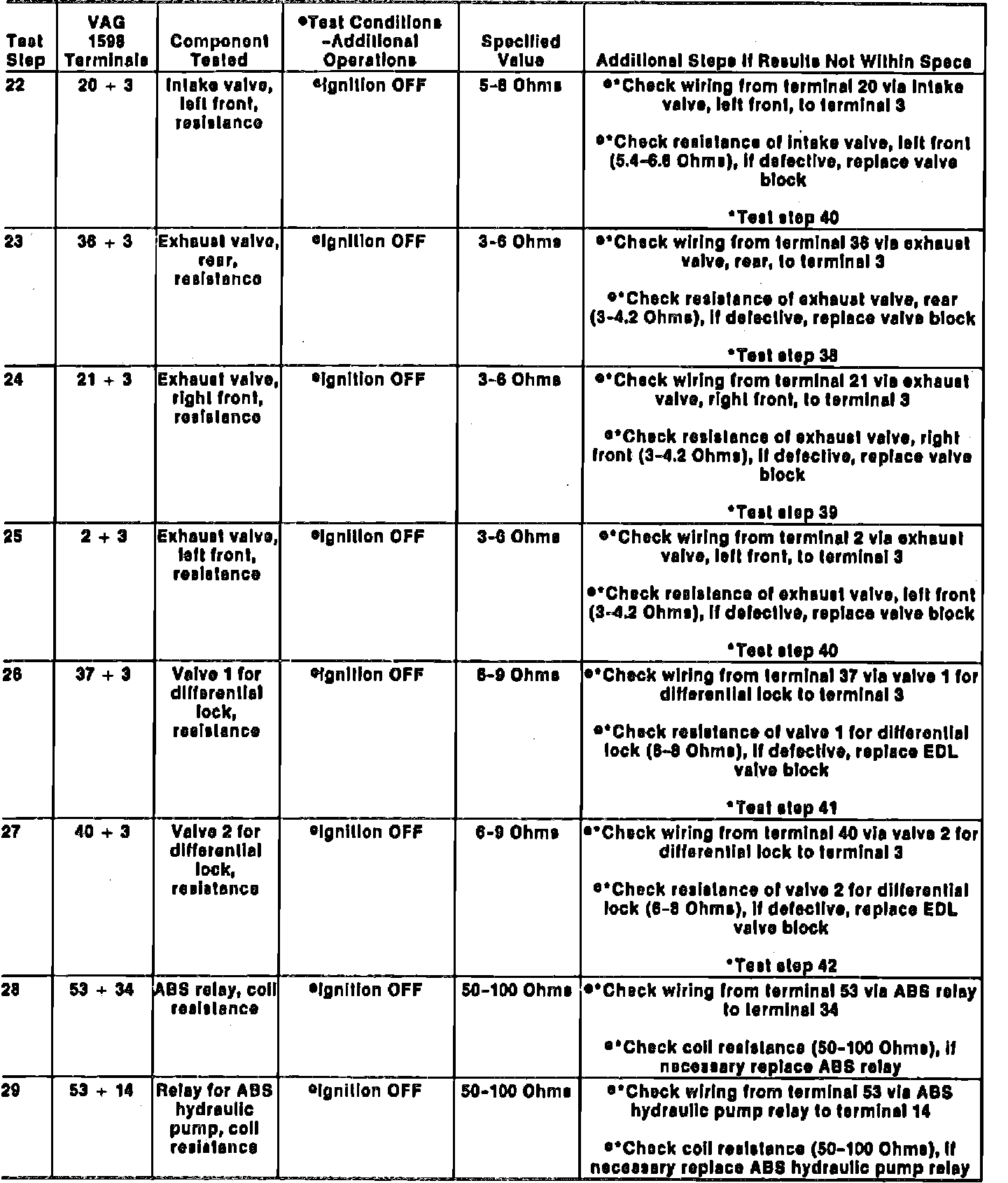 Fig. 13 ABS Electrical Testing Troubleshooting Chart (Part 4 Of 8). Corrado Models w/Electronic Differential Lock (EDL):