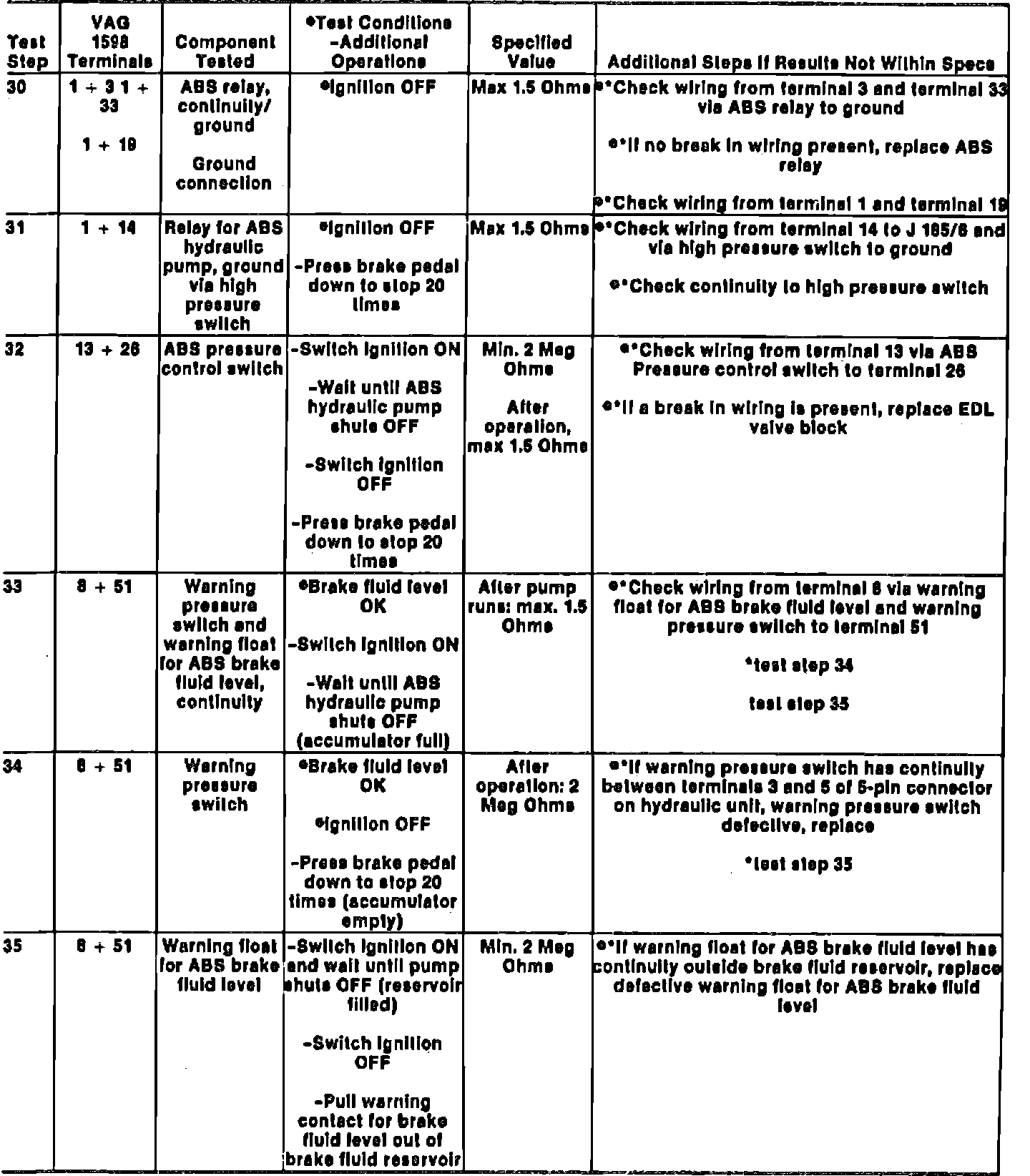 Fig. 13 ABS Electrical Testing Troubleshooting Chart (Part 5 Of 8). Corrado Models w/Electronic Differential Lock (EDL):