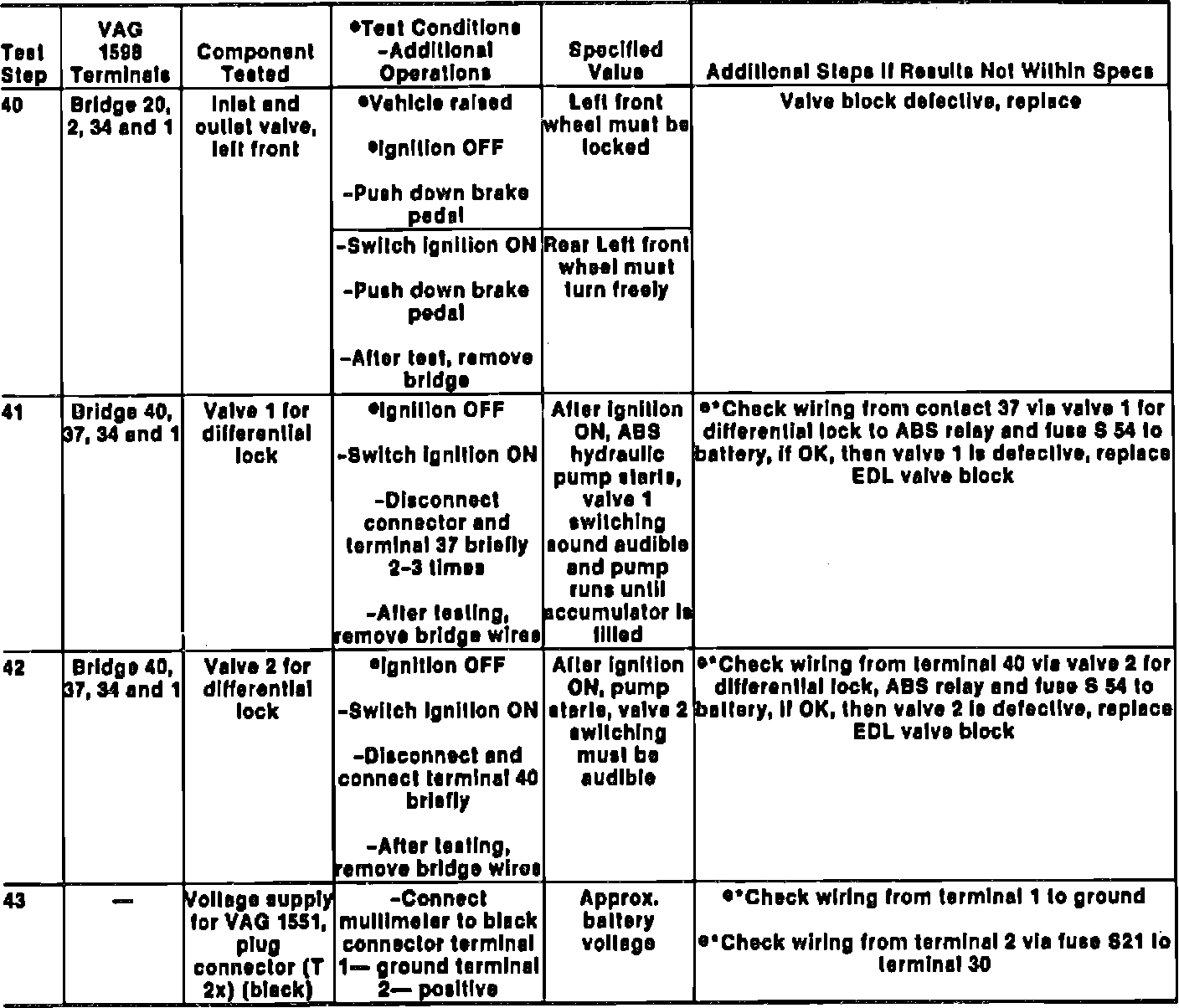 Fig. 13 ABS Electrical Testing Troubleshooting Chart (Part 7 Of 8). Corrado Models w/Electronic Differential Lock (EDL):