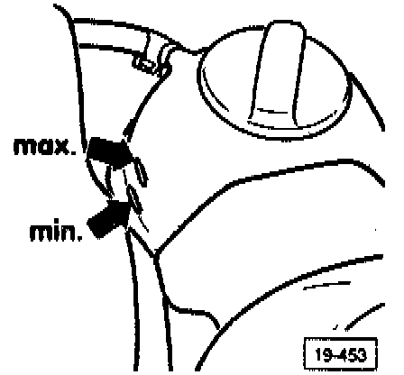 - check coolant level. If necessary, top off up to the marking. With engine at operating temperature, coolant level should be at max mark. With the engine cold, the coolant level should be between the min and max marking.