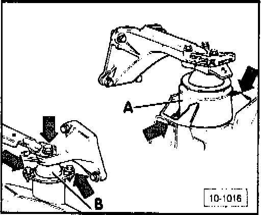 - loosen bushing B on transmission mount (arrows)
