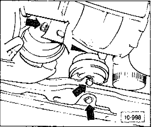 - loosen front engine mount and mount bracket (arrows)