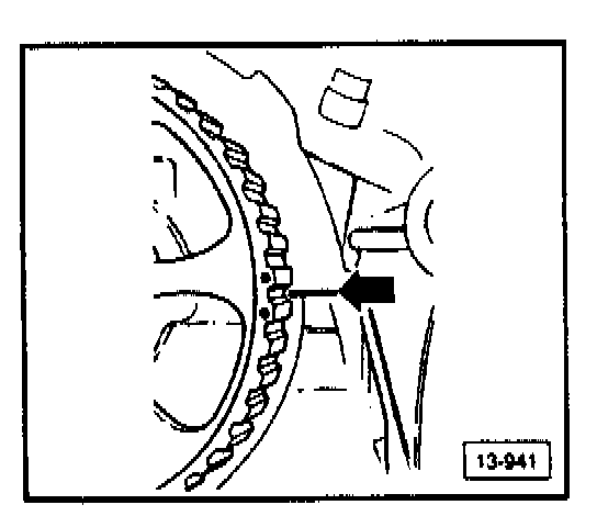 - align mark on crankshaft pulley vibration dampener with mark on intermediate sprocket (TDC cylinder 1)