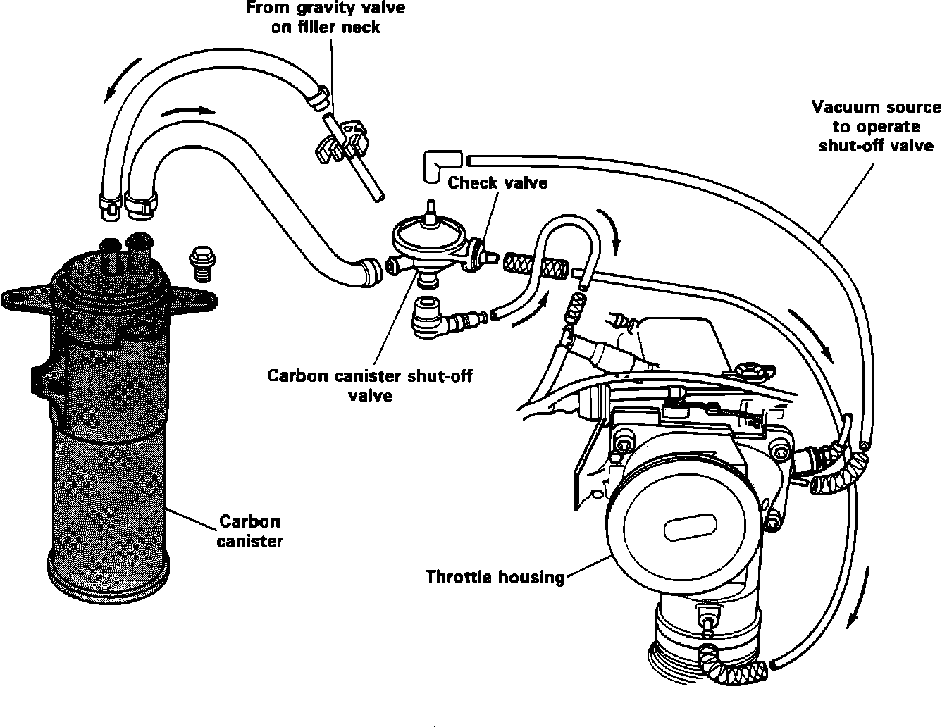 3. If not, check for leaks at the fuel filler cap and in the vent system between the charcoal canister and the Fuel Tank.