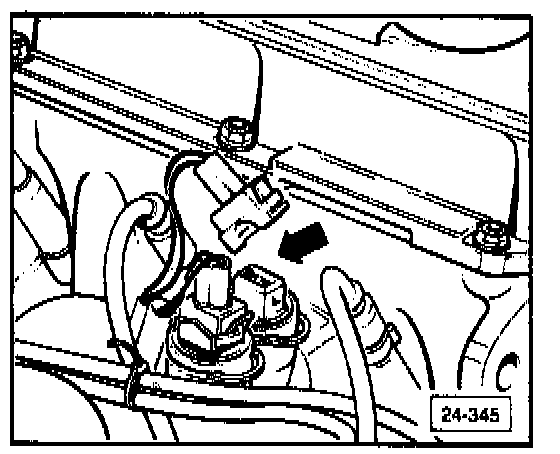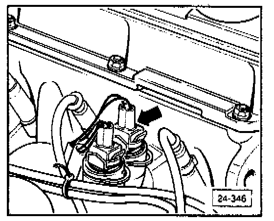 - re-connect coolant temperature sender harness connector (arrow) and check ignition timing at 2500 RPM